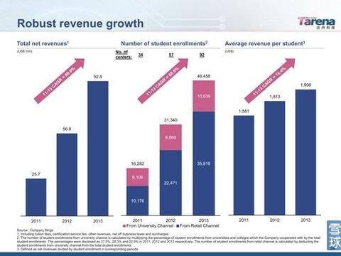 學(xué)員ARPU值從2011年的1581美元增長(zhǎng)至2013年的1998美元,復(fù)合增長(zhǎng)12.4%;