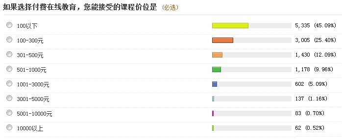 在教育平臺買課程只是對少數(shù)人的短周期內(nèi)的非頻發(fā)的剛性需求,人會經(jīng)常購物,但不會經(jīng)常買課學(xué)習(xí)。因此需求頻度和價格強度都不足,下邊有2組來自騰訊的調(diào)查數(shù)據(jù)(受訪者1年35.8%接受過在線教育課程,包括免費和付費課程)