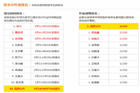作業(yè)批改后會有專門的顯示頁面,其中包括孩子的成績排名和作業(yè)時間完成的排名(如圖3),提供競爭環(huán)境。