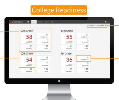LearnSprout最新公布的“大學(xué)升學(xué)準備儀表盤”功能,服務(wù)于高中輔導(dǎo)員,讓他們能以簡便、直觀的工具監(jiān)控學(xué)生的大學(xué)升學(xué)準備情況。分析學(xué)生升學(xué)準備情況的數(shù)據(jù)當(dāng)然來源于學(xué)生信息系統(tǒng),這項功能要分析的數(shù)據(jù)有GPA(平均成績點數(shù))、出勤記錄,考試成績等。