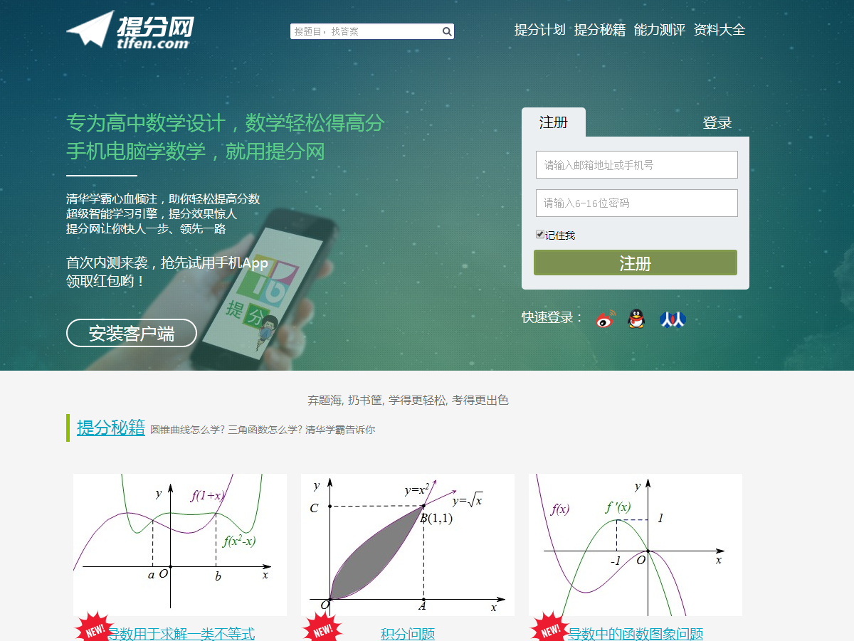 目前多數(shù)“在線試題”只是將試題搬到了電腦或手機屏幕中,并沒有本質上的改變?!疤岱志W(wǎng)”讓用戶在網(wǎng)站上完成習題測試,根據(jù)用戶的數(shù)據(jù)動態(tài)調(diào)整,推薦最合適他們的高中數(shù)學練習題。