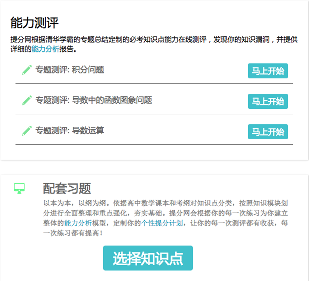 而“提分網(wǎng)”則想在這一基礎上更進一步:同不少在線教育平臺一樣,他們會讓用戶在網(wǎng)站上完成習題測試,并根據(jù)用戶的數(shù)據(jù)動態(tài)調(diào)整,給他們推薦最合適的高中數(shù)學練習題。