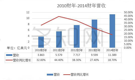 營收 11.389億美元,較上一財年的9.599億美元增長18.7%。