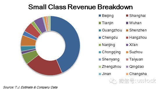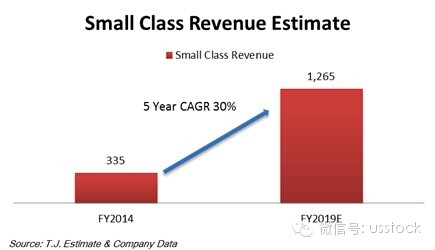 我們假設(shè)北京的75%為各城市的天花板。5年內(nèi)各地城市都能按照北上的速度擴張,那么未來5年好未來的小班收入的復(fù)合增速能達到30%。