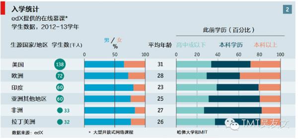 麻省理工和哈佛2012年5月聯(lián)手創(chuàng)立的edX是非營(yíng)利、帶有濃厚研究性質(zhì)的平臺(tái)。除了希望為全世界提供高質(zhì)量的教育資源以外,這一平臺(tái)還被認(rèn)為將用來研究學(xué)習(xí)和教育本身,尤其是研究現(xiàn)代技術(shù)對(duì)于學(xué)習(xí)和教育的影響。其除了為全世界的學(xué)生提供免費(fèi)課程外,另一個(gè)屬性更像是一個(gè)大學(xué)的實(shí)驗(yàn)基地,通過研究線上、線下混合教學(xué)的模式,提高傳統(tǒng)校園的教學(xué)和學(xué)習(xí)方式。edX的學(xué)生中幾乎有一半來自發(fā)展中國家。