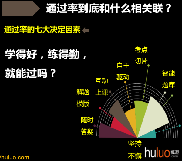 狐邏會計考試研究中心披露了一份數(shù)據(jù):自學通過率4%,面授通過率23%,視頻通過率16%,直播通過率是60%??荚囃ㄟ^率與七大因素相關:堅持不懈、隨時答疑、解題模版、互動上課、自主驅動、考點切片、智能題庫。