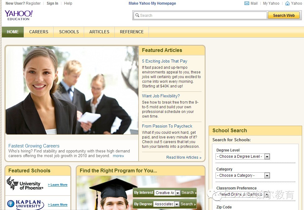 雅虎教育是針對(duì)大學(xué)生群體的一個(gè)資訊類(lèi)網(wǎng)站,主要內(nèi)容是關(guān)于一些學(xué)校和職位的信息以及課程信息等。建立該網(wǎng)站的初衷是將用戶與教育提供者及內(nèi)容提供商建立連接。