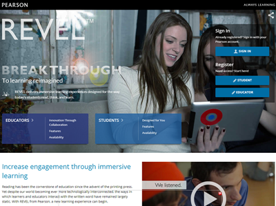 近日,培生集團(tuán)宣布推出浸入式數(shù)字學(xué)習(xí)工具REVEL,REVEL針對(duì)學(xué)生學(xué)習(xí)方式、思考方式和消費(fèi)內(nèi)容而設(shè)計(jì),旨在讓學(xué)生喜歡學(xué)習(xí)材料,從而最大限度地學(xué)好課程。