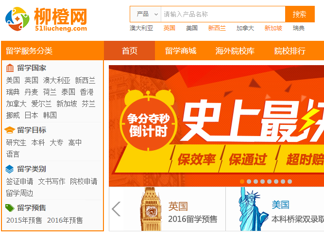 從模式來看,柳橙網(wǎng)是最典型的留學(xué)品類的電子商務(wù)平臺,于2012年3月創(chuàng)立,內(nèi)容包括海外院校庫、大學(xué)排名、留學(xué)問答、留學(xué)商城等,服務(wù)產(chǎn)品體系搭建基本涵蓋了留學(xué)申請的全部過程。柳橙網(wǎng)的產(chǎn)品點評部分有用戶自行評價,平臺只負(fù)責(zé)交易和前期的資質(zhì)鑒定。學(xué)生在柳橙留學(xué)平臺上選擇與其達(dá)成合作的機(jī)構(gòu)的產(chǎn)品,在線完成付款,付款完成后,由相應(yīng)機(jī)構(gòu)對學(xué)生進(jìn)行后續(xù)的申請服務(wù)。