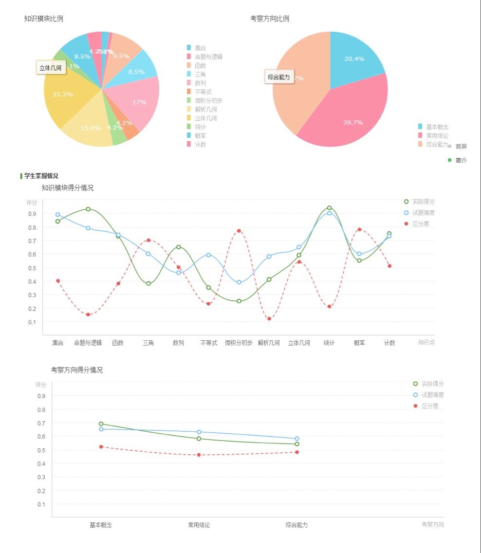 通過快樂學(xué),老師可以調(diào)用任意知識點的題目,備課、布置作業(yè)、出題,學(xué)生交作業(yè)后,會生成分析報告,包括錯誤率、弱項、知識模塊得分、綜合能力等維度,將學(xué)生“分類”,老師再進(jìn)行針對性的講解。