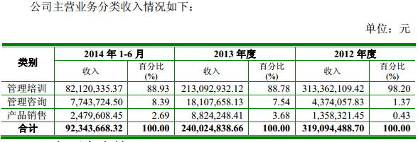 公司的主營業(yè)務(wù)為企業(yè)管理培訓(xùn)、管理咨詢服務(wù)以及相關(guān)圖書音像制品銷售。