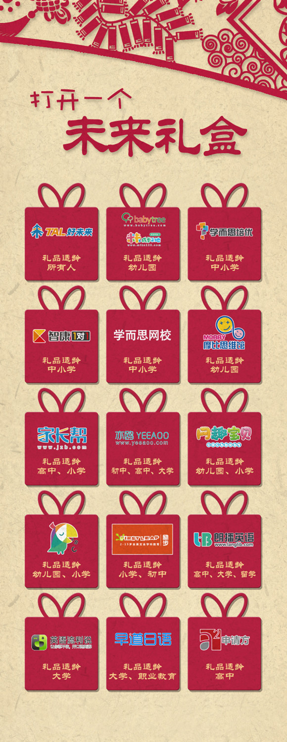 多知網(wǎng)2月12日消息,接近年底,在微信、支付寶、QQ、微博相繼開始加入發(fā)紅包大戰(zhàn)之時,好未來聯(lián)合旗下事業(yè)部、已投資企業(yè),將于16日推出類搶紅包營銷H5頁面。