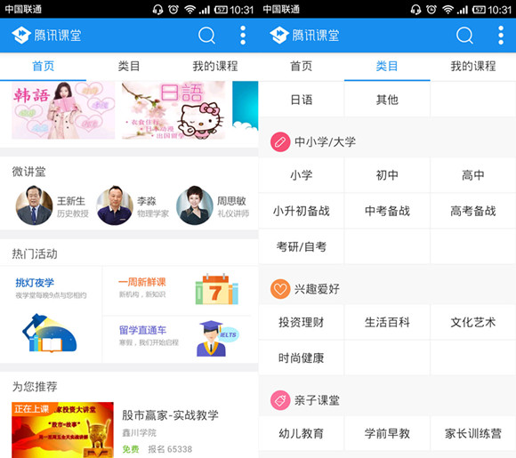 目前,騰訊課堂上除了雅思、托福等考試類培訓課程外,也有興趣愛好、親子課堂等興趣類課程。用戶可以通過直接搜索、選擇對應類目等方式。