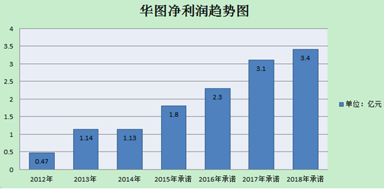 公告顯示,華圖教育承諾2015 年至 2018 年期間利潤(rùn)不低于1.8億元、2.3億元、3.1億元及3.4億元。如未達(dá)到,自然人股東需通過現(xiàn)金+股票的方式進(jìn)行補(bǔ)償。
