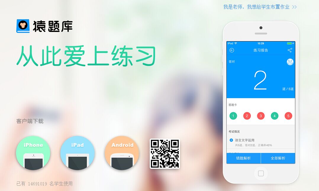 今日在猿題庫(kù)2015教育移動(dòng)大會(huì)上,猿題庫(kù)發(fā)布“猿題庫(kù)老師版”,通過(guò)支持老師在線布置作業(yè)的功能正式進(jìn)入學(xué)校內(nèi)教學(xué)環(huán)境,該產(chǎn)品對(duì)于老師、學(xué)生和學(xué)校均免費(fèi)。