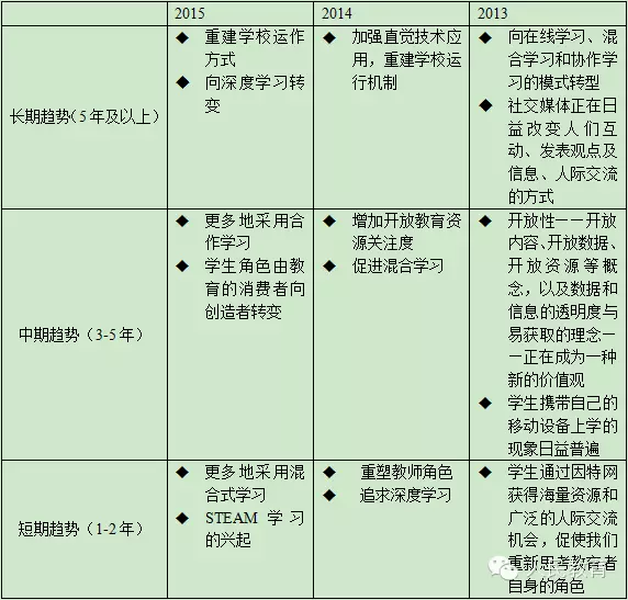 2013-2015年《地平線報告》中K-12領域教育技術的6大重要進展