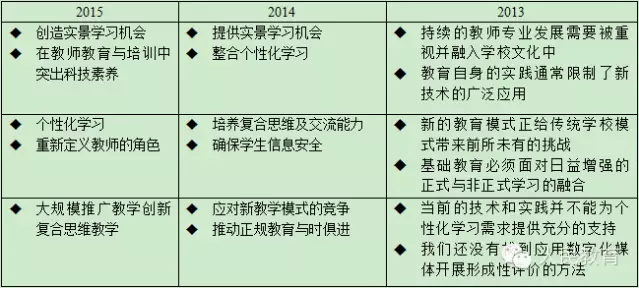 2013-2015年《地平線報告》中阻礙K-12領域技術應用的6大關鍵趨勢