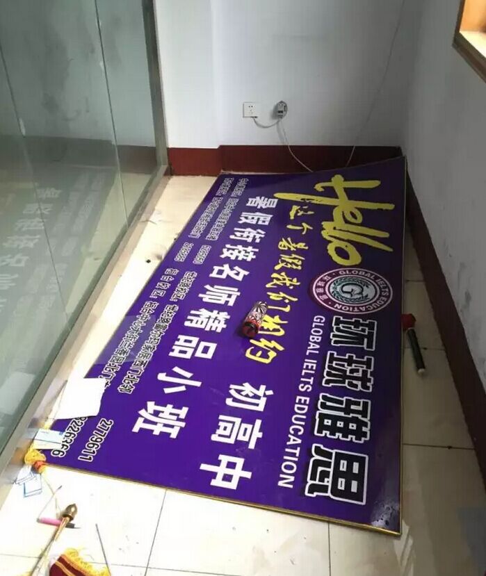 圖為跑路“環(huán)球雅思”學校廣告牌