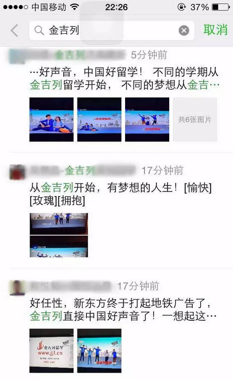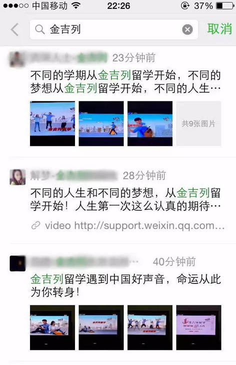 很多行業(yè)內(nèi)的朋友對金吉列員工因?yàn)閺V告投放的事情刷朋友圈,刷微信群表示反感,并列出一二三說明無意義,其實(shí)這刷屏壓根不是給你看的,他們的目標(biāo)人群首先是收看好聲音的潛在留學(xué)客戶,其次是員工朋友圈的客戶,通過廣告事件對朋友圈集中進(jìn)行一次引爆,對于市場招生還是有很大意義的。