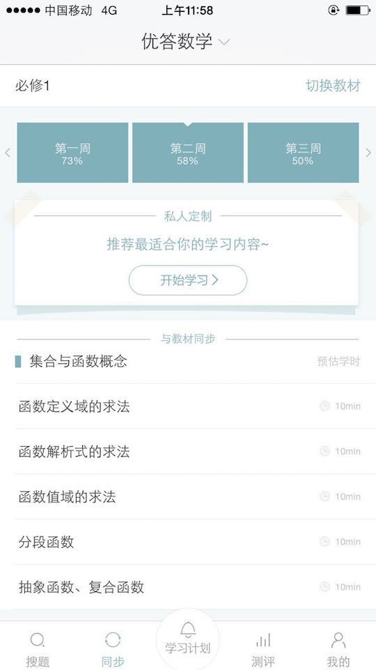 經(jīng)過9個月的磨合,數(shù)學科目首先實現(xiàn)了內(nèi)容結構化,學生可以在優(yōu)答數(shù)學的“私人定制”模塊嘗試自適應學習的效果,其余初高中全選段9個科目預計在今年年底陸續(xù)完成內(nèi)容結構化,實現(xiàn)自適應學習。
