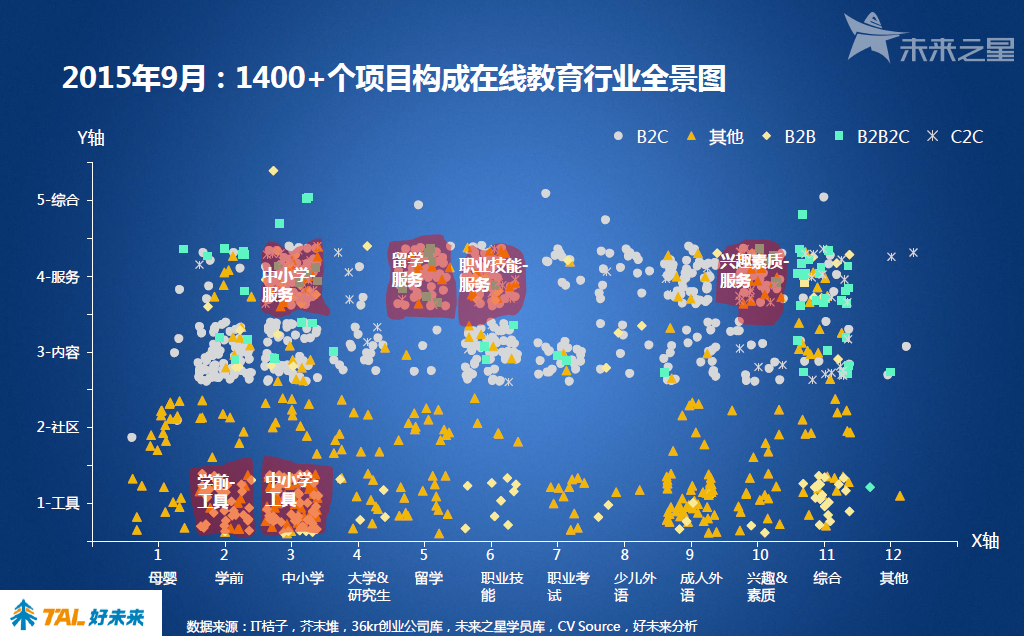圖1:在線教育行業(yè)全景圖(1400多個項目)