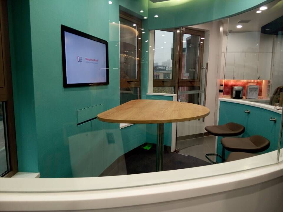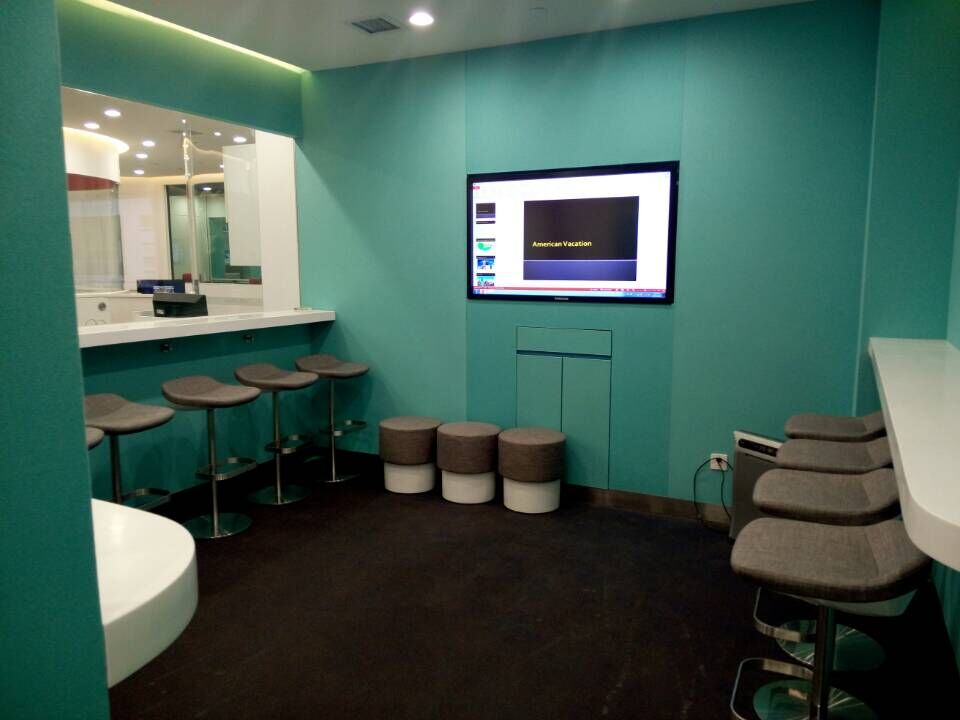 第二、增加互動(dòng)性設(shè)計(jì),取消傳統(tǒng)前臺(tái),教室布局也采用圍坐式擺放。整個(gè)教學(xué)中心采用開間布局,除了小教室有玻璃外,語(yǔ)音設(shè)備都安置在開放的空間里;第三、數(shù)字設(shè)備全新升級(jí)。比如社交區(qū)域就懸掛多臺(tái)寬屏高新LED屏幕,可以播放最新的教學(xué)活動(dòng)。