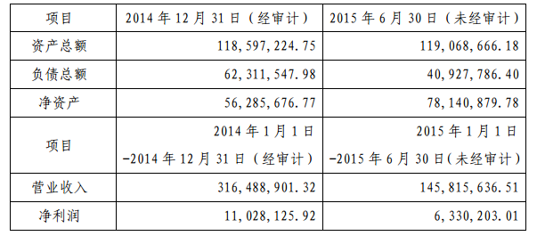 知音文化2014年、2015年1-6月的營業(yè)收入分別是3.16億元、1.46億元,凈利潤分別是1103萬元、633萬元。主要財務(wù)數(shù)據(jù)如下表所示: