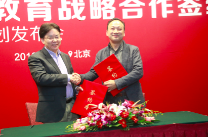 達(dá)內(nèi)教育集團(tuán)總裁韓少云(左)和阿里云業(yè)務(wù)總經(jīng)理劉松(右)