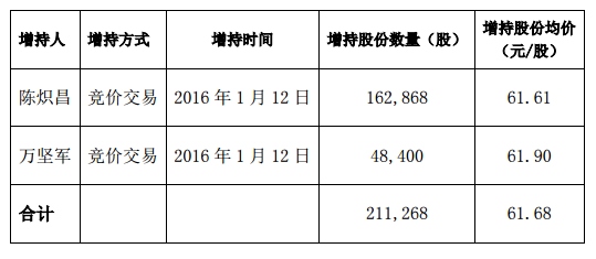 具體增持情況如下表所示: