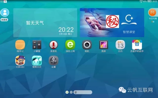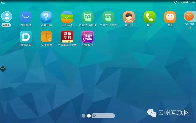 值得一提的是學(xué)習(xí)和娛樂模式的切換系統(tǒng)。一般來說,同學(xué)只能夠操作學(xué)習(xí)模式,只有在學(xué)習(xí)了一定時(shí)間后,才能夠切換到娛樂模式。在娛樂模式中,同學(xué)可以通過百度手機(jī)助手(預(yù)裝的)下載游戲及其他應(yīng)用。娛樂時(shí)間用盡后會(huì)強(qiáng)制回到學(xué)習(xí)模式。在學(xué)習(xí)模式下,娛樂模式中安裝的第三方應(yīng)用(如游戲)不會(huì)顯示在桌面上??勺⒁饪聪聢D右上角的按鈕和小字,上面寫著“今日可用x小時(shí)x分" (左為學(xué)習(xí)模式,右為娛樂模式)。