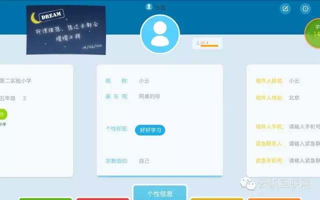 這個(gè)界面中會(huì)讓同學(xué)輸入一些基本信息,其中引用了一些社交元素和游戲元素。例如簽到系統(tǒng)。這里主要包括了其本信息、學(xué)習(xí)信息、個(gè)性信息、聯(lián)系信息以及家庭信息。