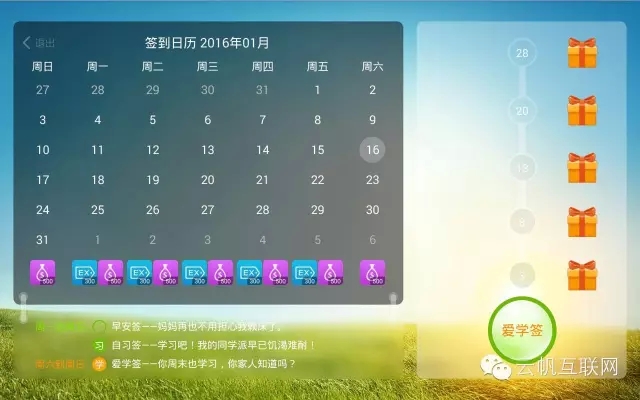 簽到系統(tǒng)是典型的游戲元素,里面包含了對用戶短期目標(biāo)的設(shè)定和達(dá)到目標(biāo)后的獎(jiǎng)勵(lì)。簽到的作用是保證用戶的活躍度。我們可以看到這里有很完善的簽到設(shè)計(jì)。
