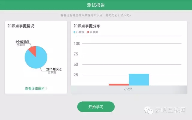 測試完成后,系統(tǒng)會(huì)告訴同學(xué)知識(shí)點(diǎn)掌握的情況(我假裝做錯(cuò)一些題):