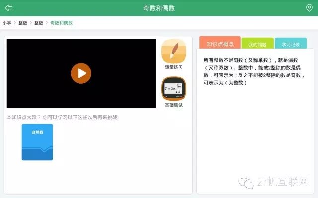 這個(gè)就是某個(gè)知識(shí)點(diǎn)的教學(xué)界面,里面包含了幾個(gè)元素:教學(xué)視頻、隨堂練習(xí)、基礎(chǔ)測試、知識(shí)點(diǎn)文字說明、錯(cuò)題本、學(xué)習(xí)記錄和關(guān)聯(lián)知識(shí)點(diǎn)推薦:
