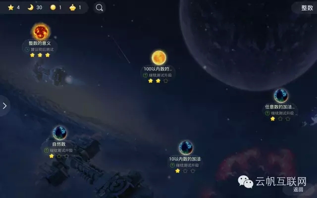 這個(gè)星圖代表了不同的知識(shí)點(diǎn)。我們可以注意到一些細(xì)節(jié),就是當(dāng)一個(gè)知識(shí)點(diǎn)沒有星星的時(shí)候,這個(gè)星球是全黑的,一顆星會(huì)有一些亮光,兩顆星會(huì)變成黃紅色,三顆星會(huì)變成火紅色: