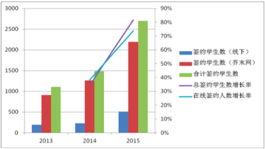 簽約學(xué)生訂單數(shù)變化(2013-2015)