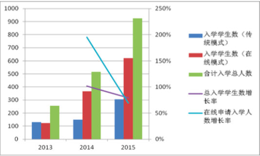 學(xué)生入學(xué)數(shù)量變化情況(2013-2015)