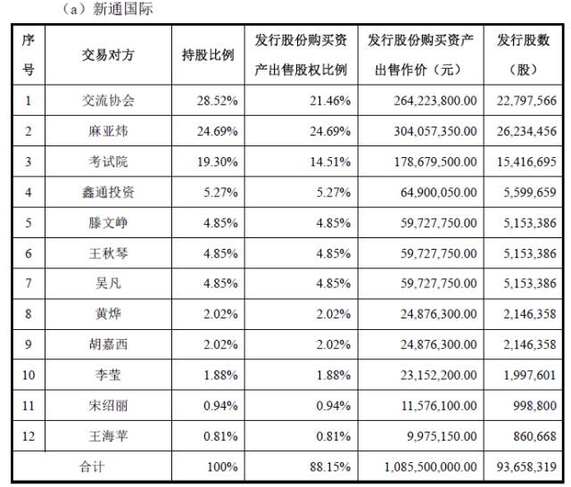 從公告里大家可以看到新通的國資背景(浙江省教育廳),浙江省國際交流協(xié)會,浙江省考試院,所以本次收購也獲得了浙江省財政廳的同意;從表面上看二者占有新通系股份要高于麻亞煒,但麻總又控股鑫通投資,所以整體來說控股相當(dāng),互相制約,看來原新通系的股權(quán)相當(dāng)復(fù)雜。