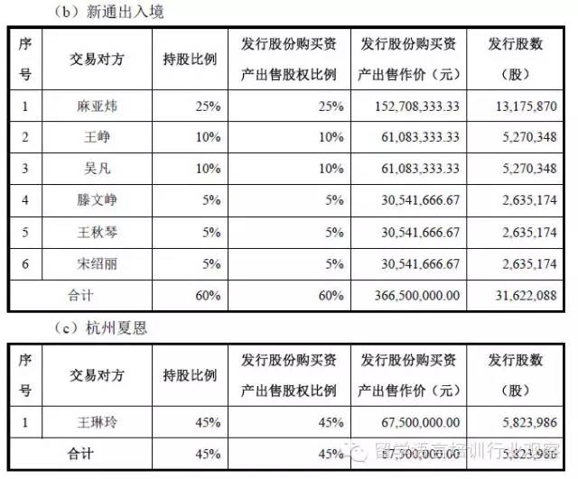 本次交易中,經(jīng)本公司與新通國際相關(guān)股東協(xié)商,新通國際100.00%股權(quán)的交易價格擬定為123,150萬元,新通出入境60.00%股權(quán)的交易價格擬定為36,650萬元,杭州夏恩45.00%股權(quán)的交易價格擬定為6,750萬元。