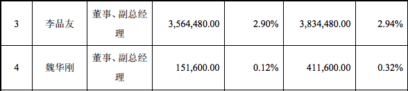 本次股票發(fā)行前后部分董事、監(jiān)事、高級(jí)管理人員及核心員工持股變動(dòng)情況如下: