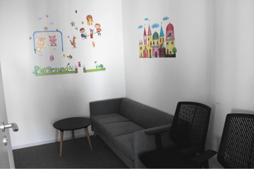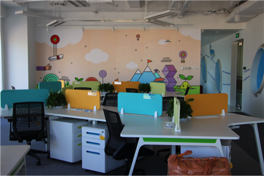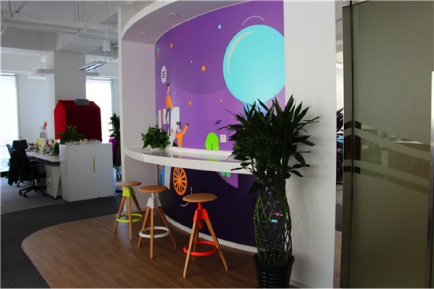 看著色彩明艷的卡通墻,人的身心的緊張感瞬間放下了,抱著輕松從容的心態(tài)談工作,想必效率更高吧。