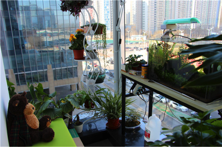 “公司給每個人200元錢,用于布置個人工位。這個角落是我們公司的‘司花’布置的,各種花和魚,小巧精致,簡直是公司里最美的一角?!惫ぷ魅藛T說。