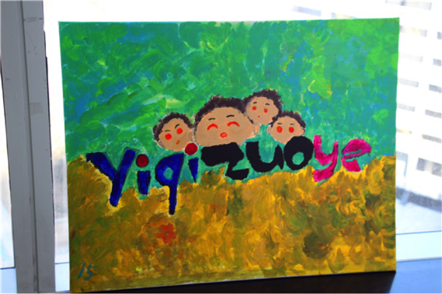 在靠窗位置,有很多繪畫作品,一起作業(yè)網(wǎng)的工作人員介紹說,這些都是一起作業(yè)各地市場部的員工畫的。這樣的圖片有很多,每個窗邊都擺了一兩張。