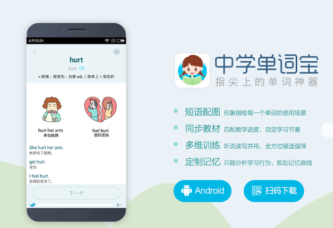 與知米英語其他產(chǎn)品相比,新推出的中學(xué)單詞寶對每個單詞的短語場景配圖,希望通過有趣的配圖增加記單詞時的樂趣。
