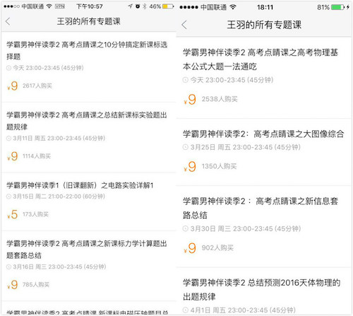 “才疏不能勝任,薪酬不可持家……”就在重慶一位老師的辭職信引爆老師薪資討論不久,近日,微信朋友圈里又曬出了一張在線輔導老師的課程清單,2617名學生購買了一節(jié)單價9元的高中物理在線直播課,據(jù)透露,扣除20%的在線平臺分成后,該老師一小時的實際收入竟然高達18842元。對比當下火熱的網(wǎng)絡女主播,這個時薪也相當有競爭力,畢竟大部分當紅網(wǎng)絡女主播除去各種分成后,3~5小時的總收入也就在15000~30000元左右。