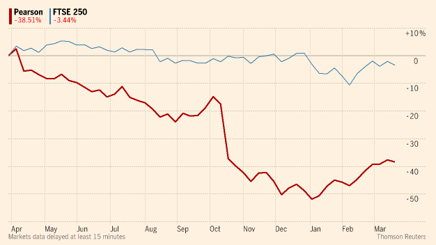 在一月份經歷了一個股價最低值6.6英鎊后,培生在周三下午的股價有所上漲,回升至9英鎊。但是在2015年,培生的股價下跌了40%。