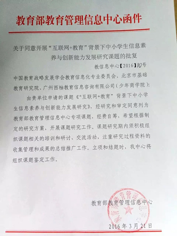 2016年3月,北京史家胡同小學正式采購了少年商學院趣課堂課程。雖然少年商學院的線下項目也曾進入一些公立校及國際學校,但這是少年商學院的在線教育項目第一次進入公立小學。與此同時,少年商學院申報的一個教育部課題獲批,同時還獲得了“第一屆全國小學生創(chuàng)新項目設計大賽”的承辦權。