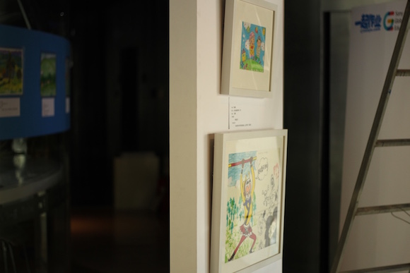 第二天下午,一起作業(yè)要在這里開一個小型的發(fā)布會,給這些孩子頒獎。兩點開始的活動,一個媽媽帶著孩子1點半就到達了現(xiàn)場,這對母子在看本次活動獲得二等獎的作品,如果不是特別說明,很難相信這張畫來自一個一年級學生。