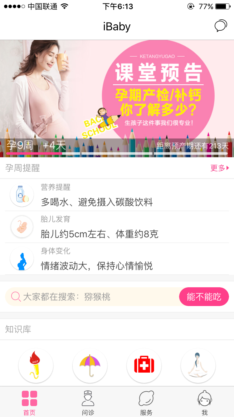 目前孕媽版本主要提供孕周提醒、在線問診、專家解讀和知識庫等功能,基本覆蓋備孕、懷孕、分娩、產(chǎn)后恢復(fù)的各個階段。針對高齡產(chǎn)婦等特殊群體的孕媽,iBaby 會請專家與她們進行進一步溝通,提供針對性服務(wù)。在醫(yī)生版本方面,入駐醫(yī)生可以與孕媽進行線上溝通與交流,同時也可以在醫(yī)生之間形成互動,此外,iBaby還為醫(yī)生提供職業(yè)技能、科室管理、財務(wù)管理等內(nèi)容的提升幫助。