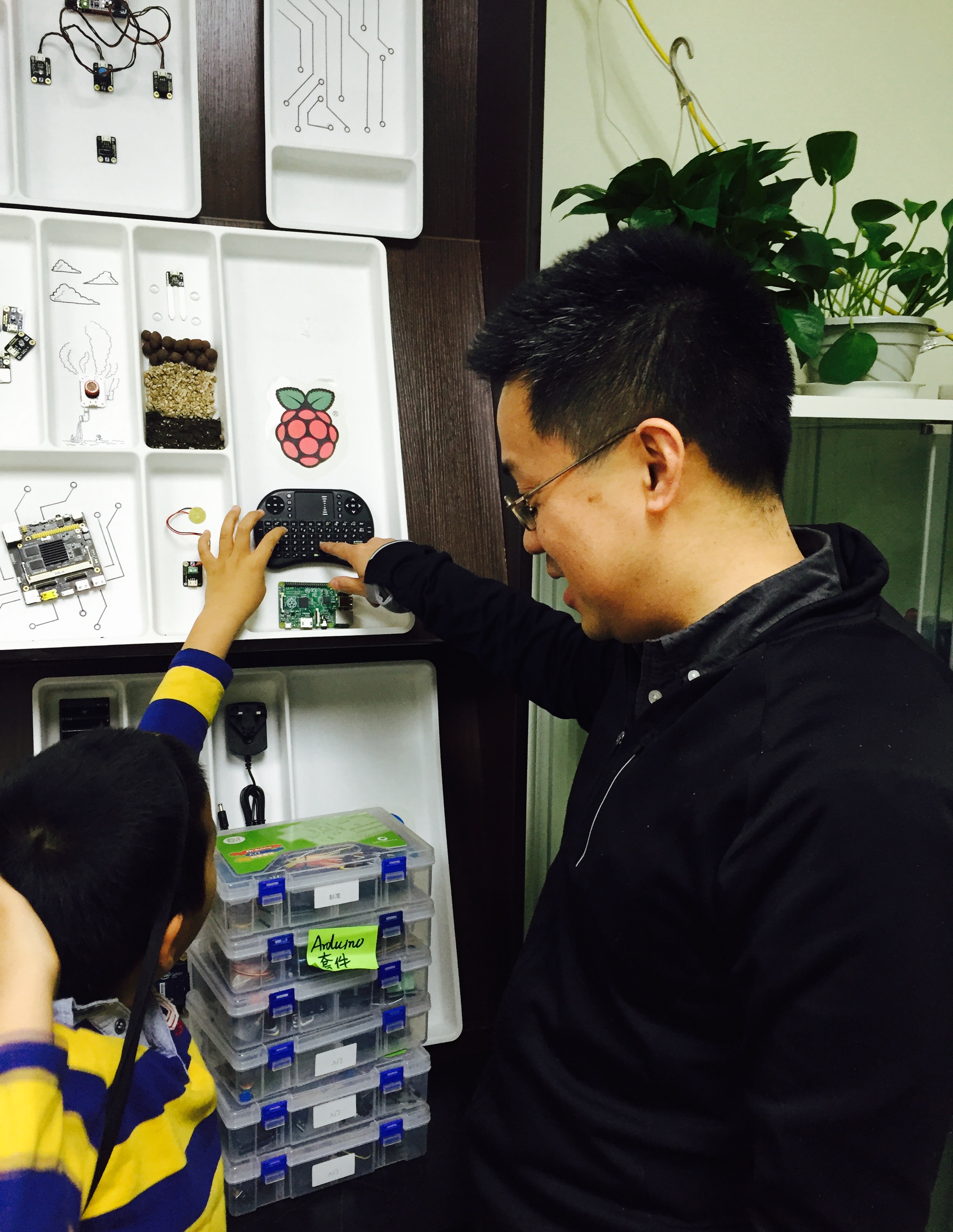 課程出來后,還相繼推出了視頻、課件及配套的書和教案,等到去年4月,張路找到了當(dāng)時(shí)還在做創(chuàng)客的陳晨,希望他結(jié)合這套課程,給小孩開一個(gè)創(chuàng)客工作坊。